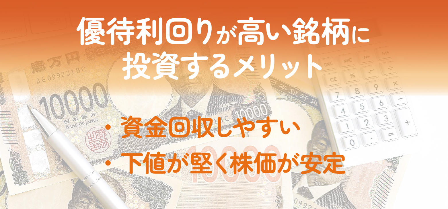 優待品が魅力的で優待利回りが高い優待銘柄は、優待目的で取得・保有する投資家が一定数いるため、株価が安定しやすいという特徴があります。